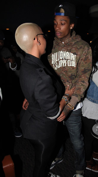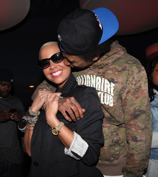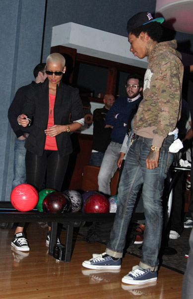 Wiz Khalifa’s new album Rolling Papers hits stores today, and Wiz celebrated the release of last night with a bowling party in conjunction with Power 105.1 at Chelsea Piers in New York. He was joined by his girl Amber Rose; however the twosome managed to keep their tongues in their mouths this week. Spotted at NB.