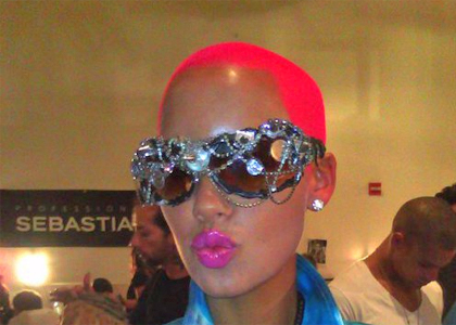 Amber Rose debuted her pink hair in Indashio’s Spring 2011 Runway show in NYC. The glasses are made by Mercura and they are pretty dope, the hair I am kind of iffy about! I mean I don’t know if this is permanent or what but I wouldn’t be surprised.