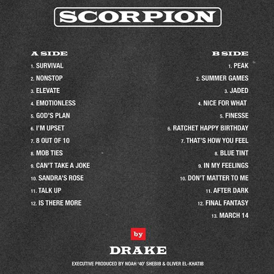 Few announcements garner enough attention to collectively stop humanity in its tracks, and simply take notice. While these events are typically reserved for headlines that are more appropriate on CNN than Complex, today isn’t one of those days. Today, the champagne papi himself, Drake, has announced his long-awaited Scorpion tracklist.