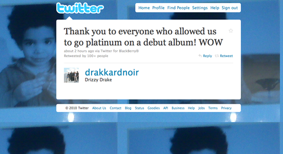 “Thank you to everyone who allowed us to go platinum on a debut album! WOW,” Drake wrote Thursday (July 22). (Drake’s Twitter)