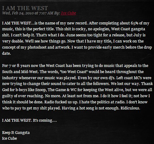 Bold statements from Cube. I fux with Cube except it might be tough to pull the whole gangster rapper facade after movies such as “Are We There Yet?“. This was jacked from Cube’s blog. Spotted at RR.